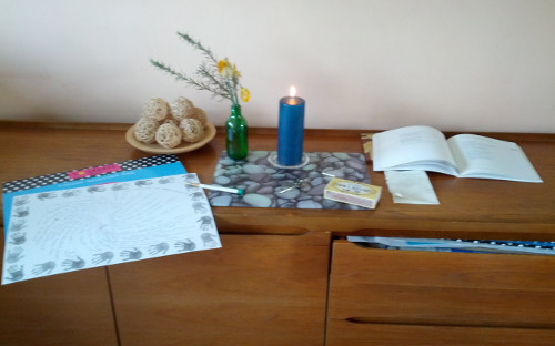 with a fresh page in your own preferred notebook, journal or Thought-Book, and a favourite pen, pencil or sharp crayon;
