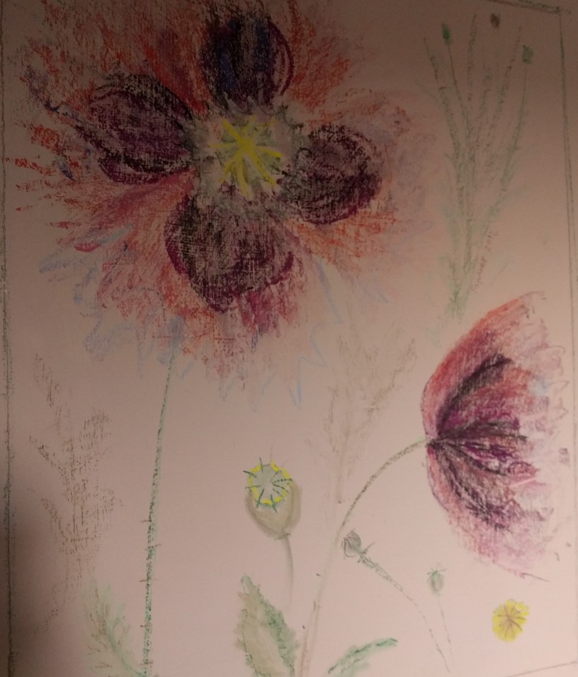 The lilac petals of opium poppies, self-seeded sporadically in my garden and sown as a crop in Afghanistan, Pakistan, South America. Their own uneasy history of healing and harming, pain relief and pain infliction.