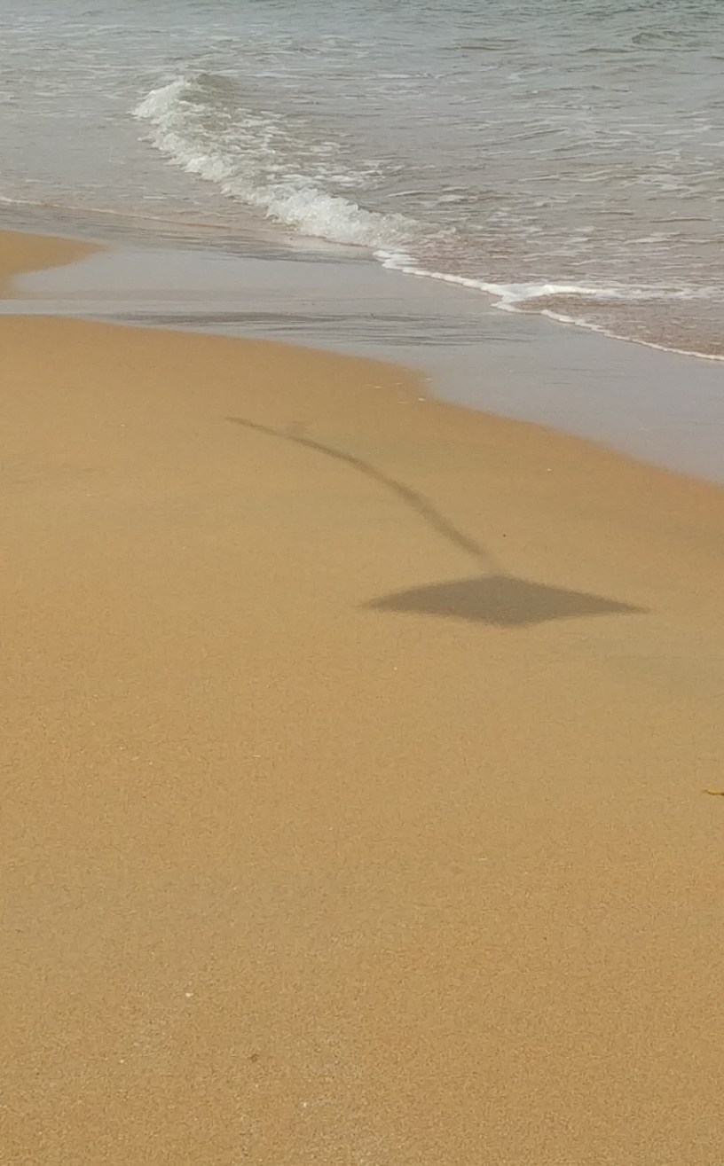 … and bringing my breath back once more into the present moment, and to the tiny happy sighs of the sea, and of my feet as I continue to walk, perpendicular to the water’s edge, and in it now up to my ankles, I am aware of …