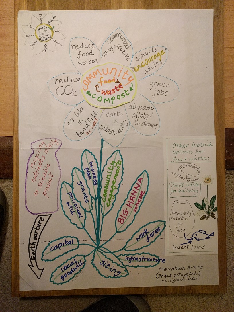 As you might expect, I ended up in the group discussing the issue of waste food and how it could feed into local growing cycles as soil-improving compost. To contribute to the necessary ideal of a Zero Waste economy.