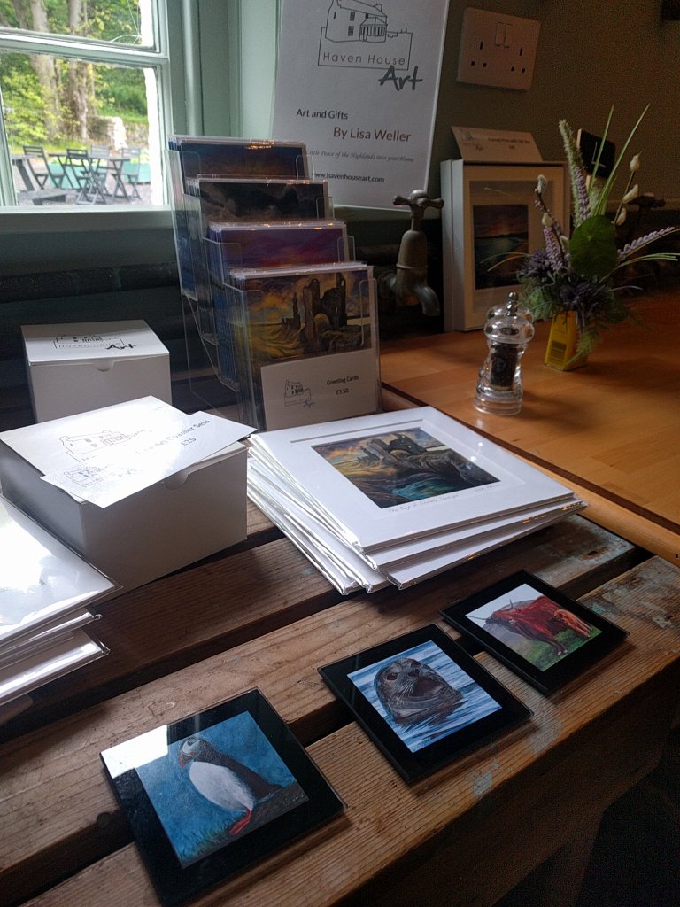 Later when the Tearoom Laundry got fuller (with seven bikers with large appetites) I moved over to where my friend had been sitting, and there was a Puffin drinks coaster just behind, in the gift display