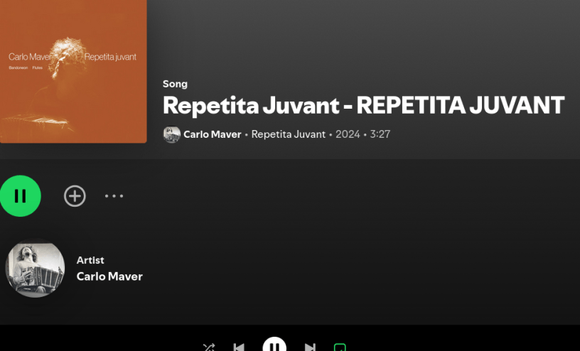 Wanting to know more about the Latin phrase, I put it into a search engine (I use Ecosia, thus supporting tree planting as I search) and came up with the eponymous title of a single track by Carlo Maver on Spotify. Here two – then three – flutes interweave over an insistent, repeating drum bass.